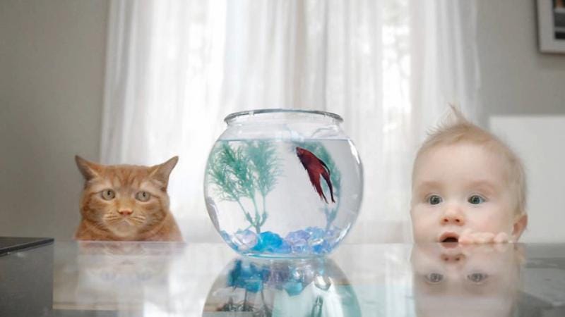 Caption Perspective: Oh what a difference even a slight shift can make! (Image showing perspective difference between a predator cat and a child looking at fish in fish tank. Image source)